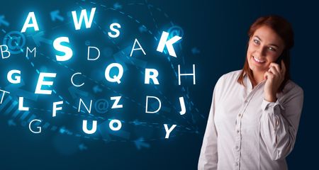 Beautiful young lady making phone call with shiny characters