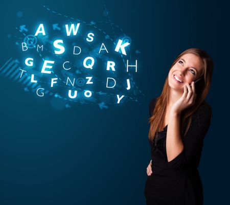 Beautiful young lady making phone call with shiny characters