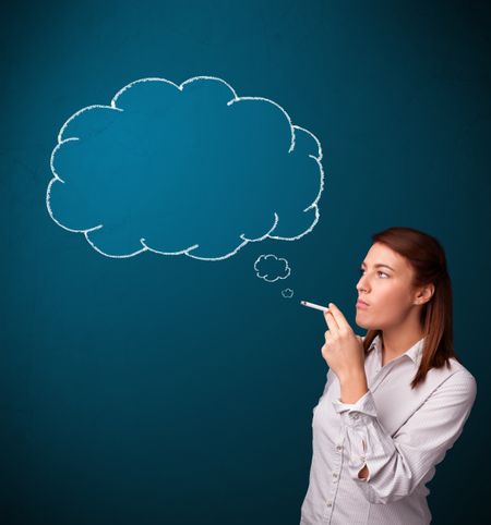 Beautiful young lady smoking cigarette with idea cloud