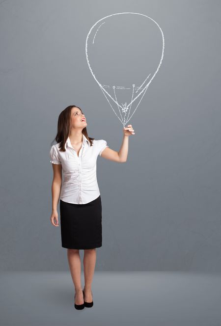 Beautiful young woman holding balloon drawing
