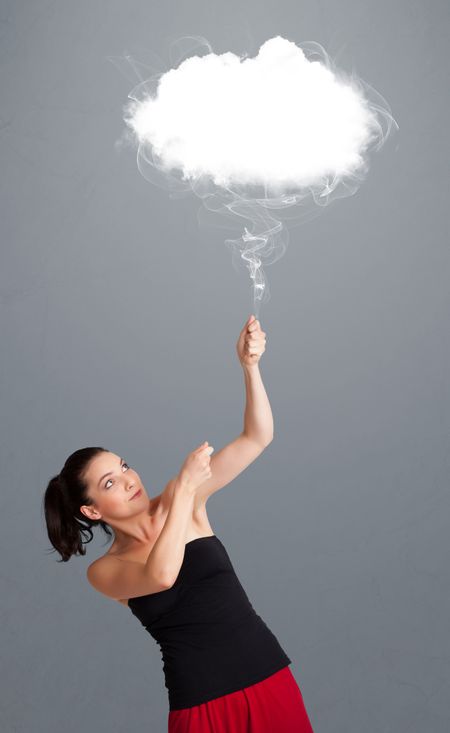 Beautiful young woman holding cloud