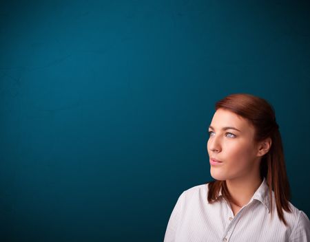 Beautiful young woman smoking cigarette with copy space