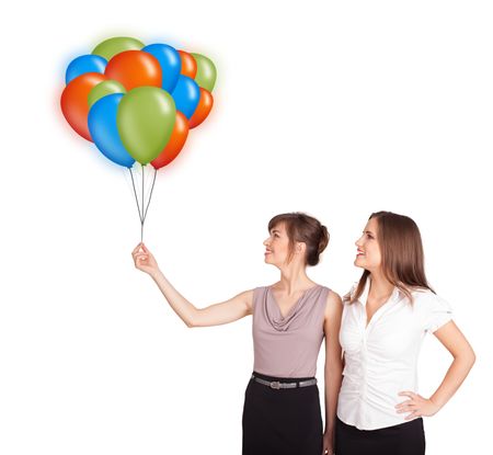 Beautiful young women holding colorful balloons