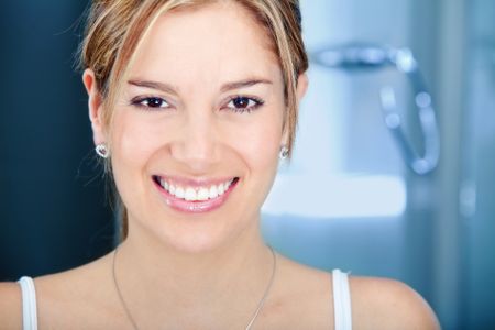 Beauty portrait of a female smiling in a bathroom