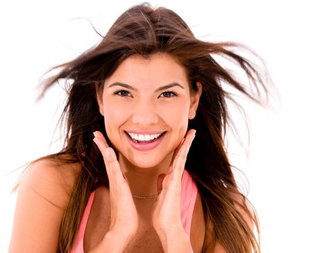 Beauty portrait of a woman smiling - isolated over white backround