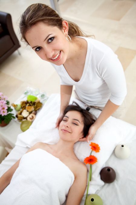 Beauty and spa girl giving a massage