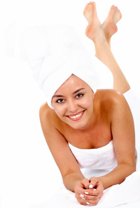 beauty and spa portrait of a very healthy looking girl isolated over a white background