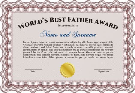 Best Dad Award. Beauty design. Customizable, Easy to edit and change colors.With great quality guilloche pattern.