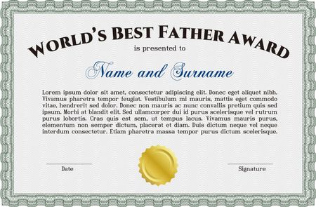 Best Father Award Template. Border, frame.Complex background. Excellent design.