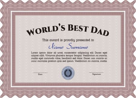 Best Father Award Template. Border, frame.Complex background. Excellent design.