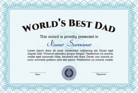 Best Father Award Template. Cordial design. With guilloche pattern and background. Border, frame.