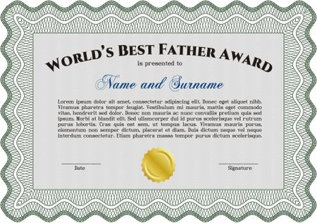 Best Father Award Template. Elegant design. Vector illustration. With guilloche pattern.