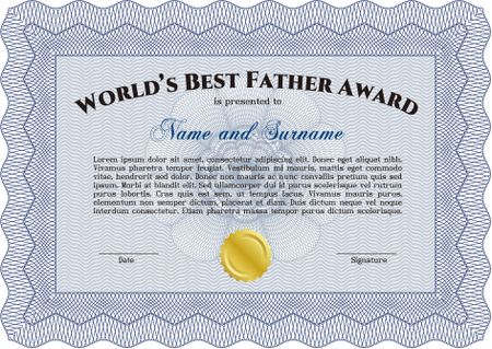Best Father Award Template. Elegant design. Vector illustration. With guilloche pattern and background.
