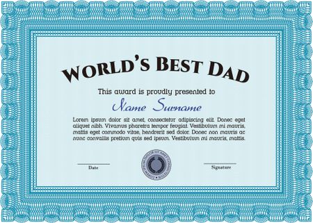 Best Father Award Template. Sophisticated design. Detailed.With complex background.