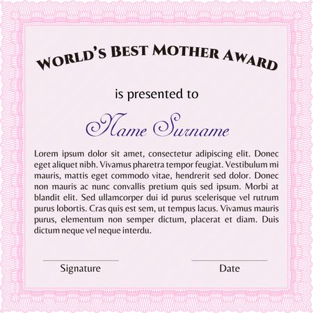 Best Mom Award Template. Complex design. Vector illustration.With quality background.