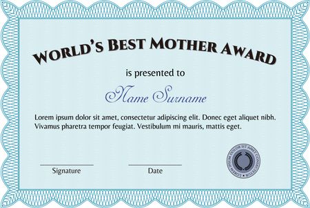 Best Mom Award Template. With complex linear background. Lovely design. Detailed.