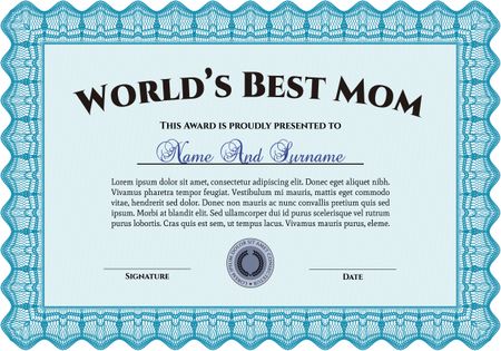 Best Mom Award Template. Elegant design. Vector illustration.With quality background.