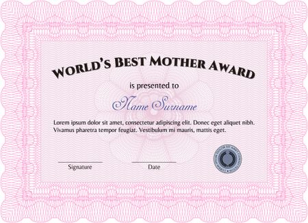 Best Mom Award Template. Good design. Complex background. Border, frame.