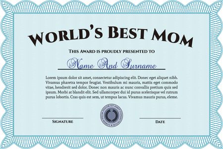 Best Mom Award. Vector illustration.With guilloche pattern and background. Excellent design.