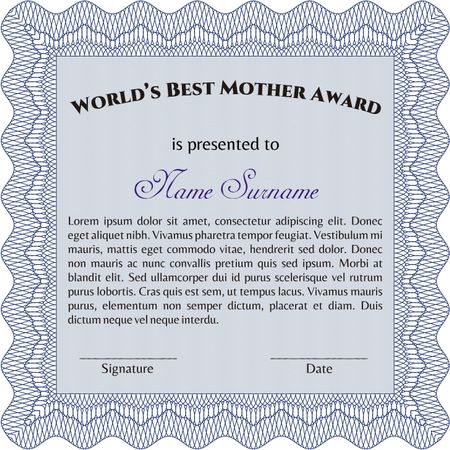 Best Mother Award. With linear background. Border, frame. Beauty design.