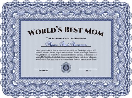 Best Mother Award. With quality background. Cordial design. Border, frame.