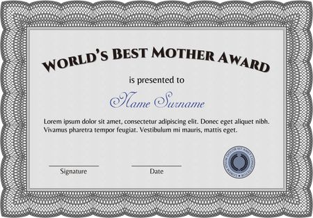 Best Mother Award Template. Vector illustration. With guilloche pattern and background. Elegant design.