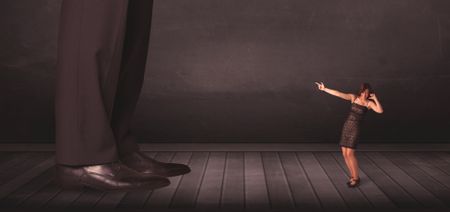 Big person with small businesswoman concept on background