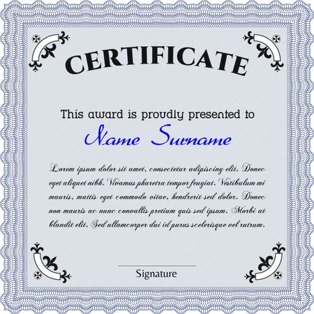 Blue Certificate. Complex design. Printer friendly. Detailed.