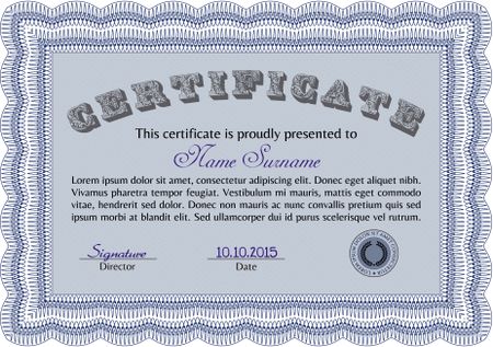 Blue Certificate design. Vector pattern that is used in currency and diplomas