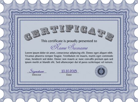 Blue certificate or diploma template
