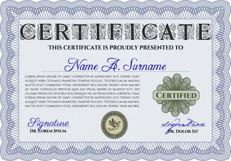 Blue Certificate template or diploma template. Complex background. Beauty design. Vector pattern that is used in currency and diplomas.