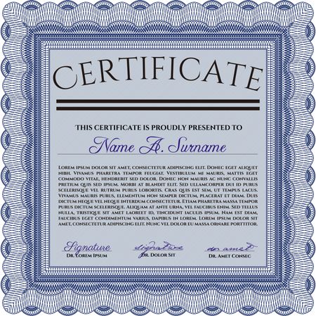 Blue Diploma template. Excellent design. Vector illustration. With complex background.