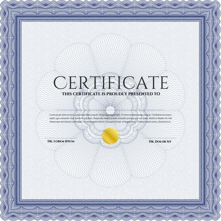 Blue Sample Diploma. Elegant design. With complex linear background. Vector certificate template.