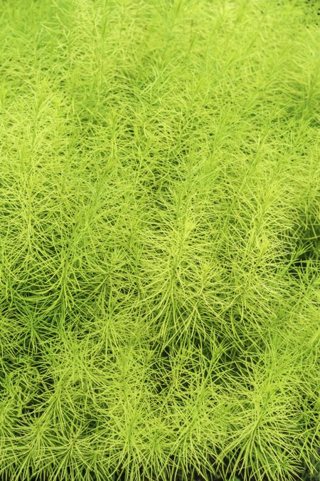 Blue star (binomial name: Amsonia hubrichtii), also known as Hubricht's bluestar, Arkansas amsonia, and thread-leaf blue star, in a summer garden, northern Illinois (foreground focus)