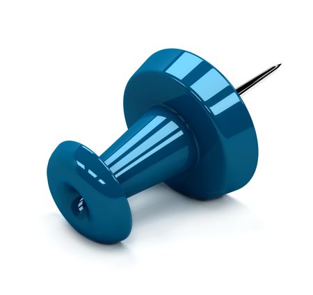 blue thumbtack isolated over a white background