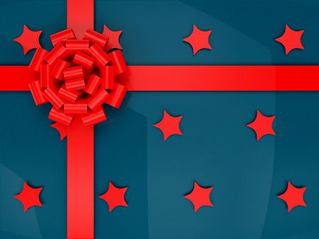Blue wrapped gift with stars and a red ribbon