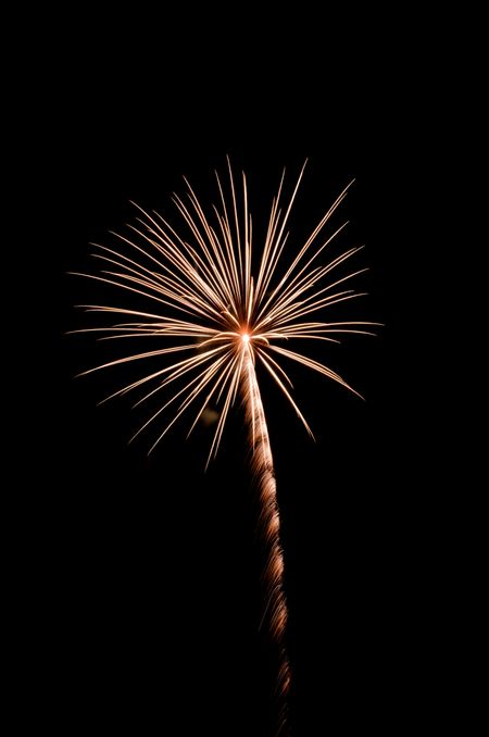 Burst of fireworks with feathery rocket trail