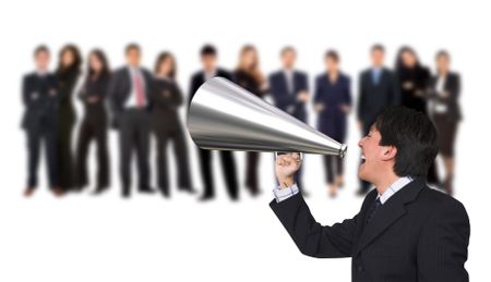 Business announcement through loudspeaker - isolated on white