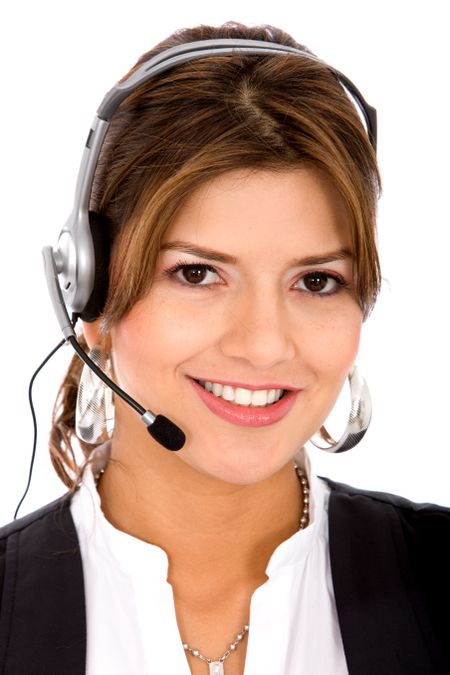 business customer support operator woman smiling - isolated