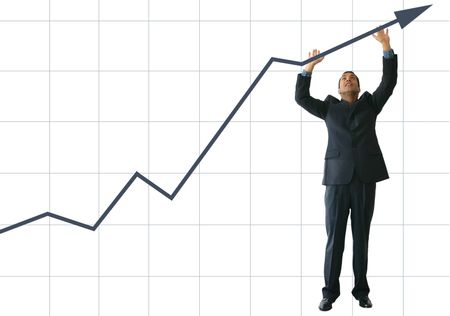 business graph with business man pushing it up - JE