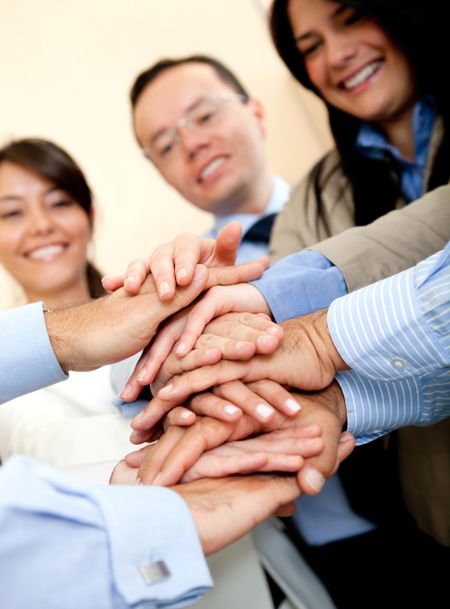 Business group with hands together - teamwork concepts