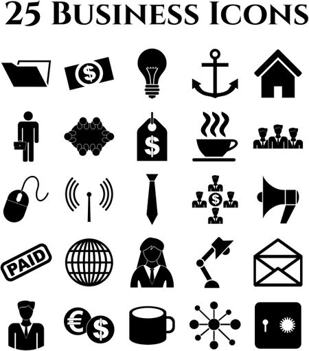 business icon set. 25 icons total. Universal and Standard Icons.
