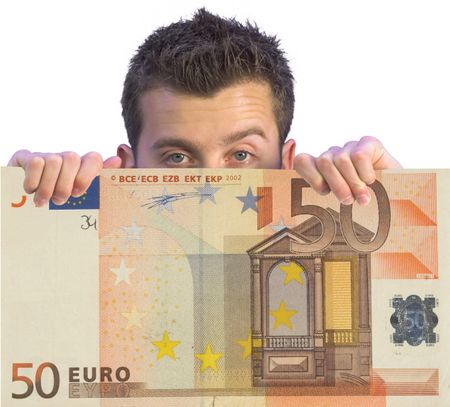 business man appearing from an euro note