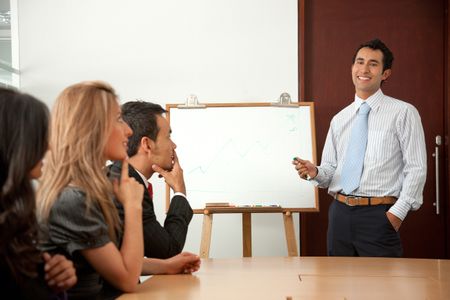 business man in a corporate meeting presenting