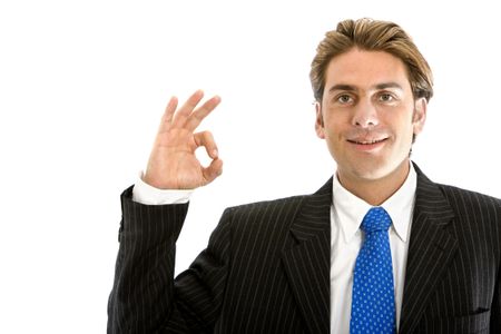 Business man doing an ok sign isolated over white