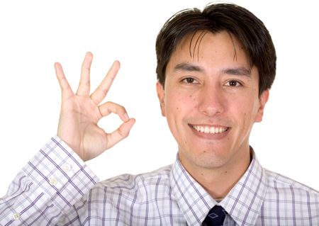 business man doing the ok sign over a white background