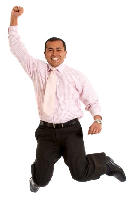 Business man jumping of success over a white background