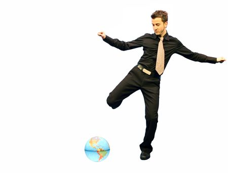 Business Man about to kick the world