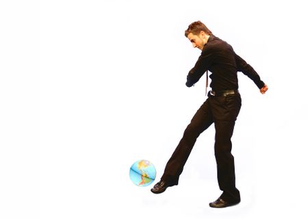 Business Man kicking the world