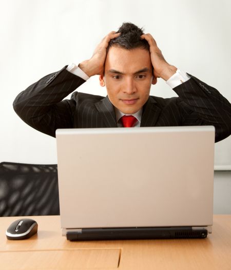 Business man with a laptop looking worried
